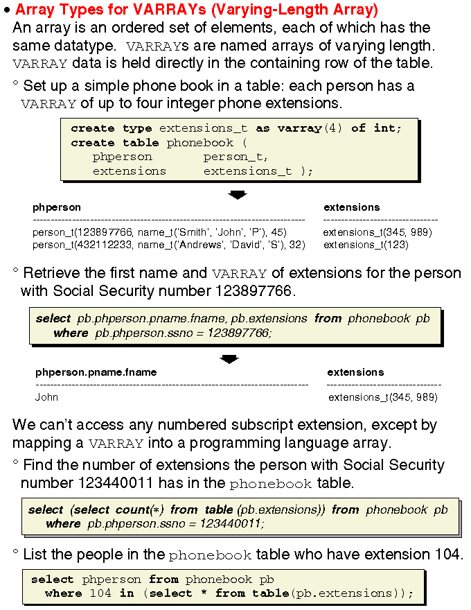 Slide 6.13: Array types for VARRAYs (Varying-length array)